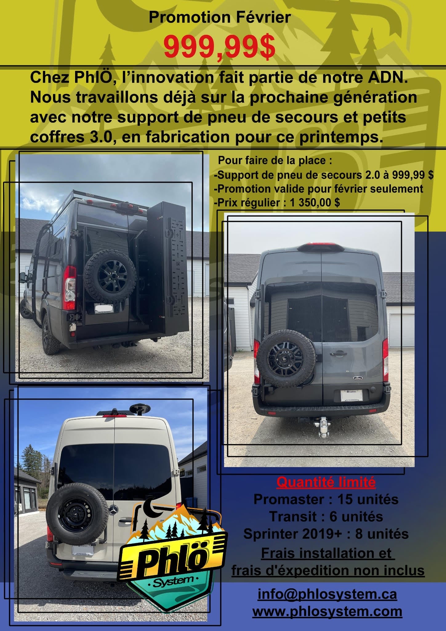 En 2021, j'ai fait l’acquisition d’un VR classe C 19'. J'ai alors réalisé rapidement que les campeurs ne sont pas conçus pour accueillir de façon sécuritaire et optimale les équipements de sport et les équipements des familles actives. Après réflexion, j'ai eu l’idée d’ajouter plus d’espace de rangement en confectionnant des coffres sur mesure à l’arrière du véhicule. Les coffres sont rapidement devenus l’accessoire qui font tourner les têtes des adeptes du camping et des véhicules aménagés.
