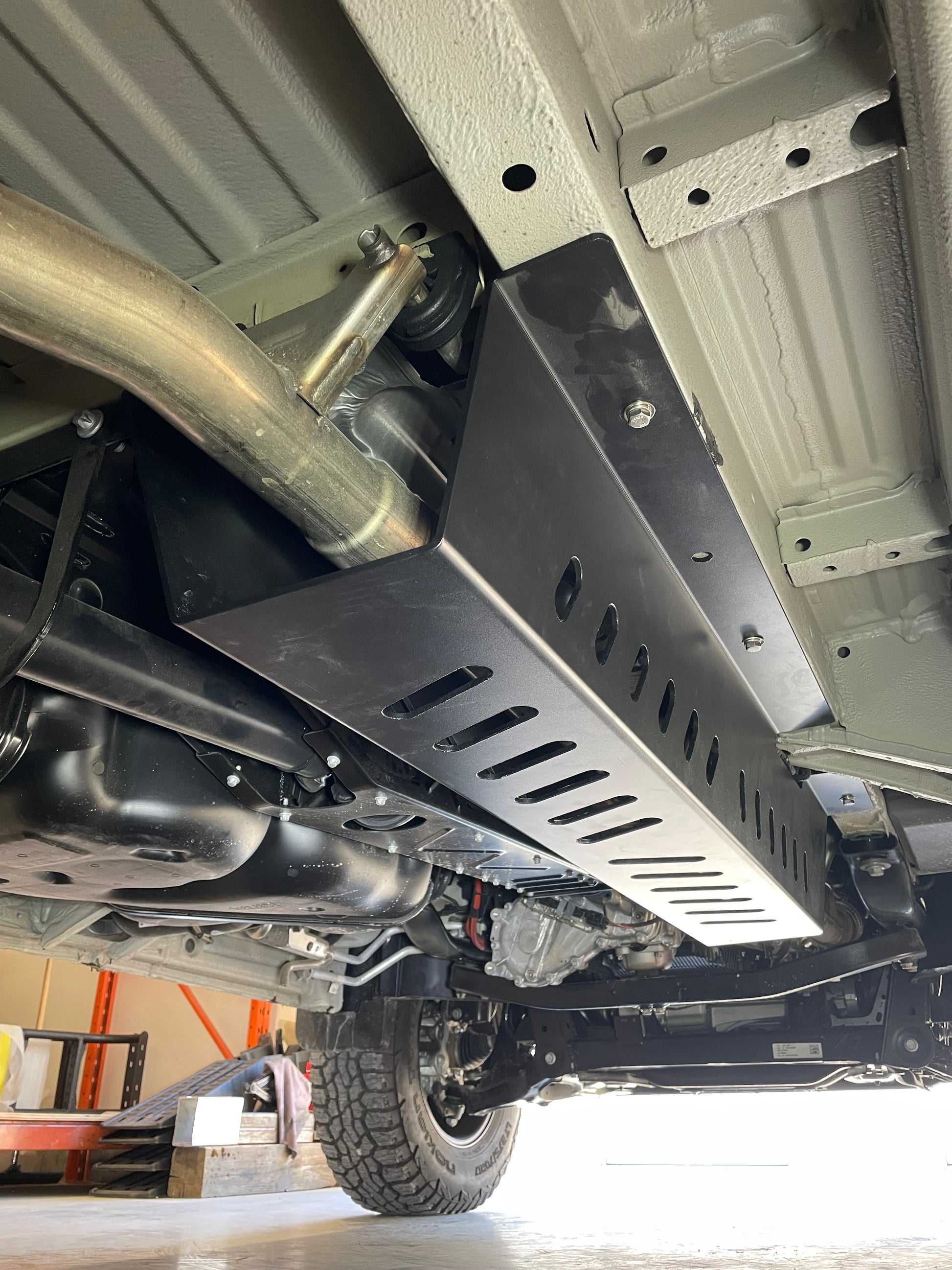Made from 3/16" thick 5052 aluminum, this guard ideally balances rigidity and lightness. Installation is primarily done using 3/8" threaded nut rivets, using existing holes under the vehicle, and requires a nut rivet tool (not included).