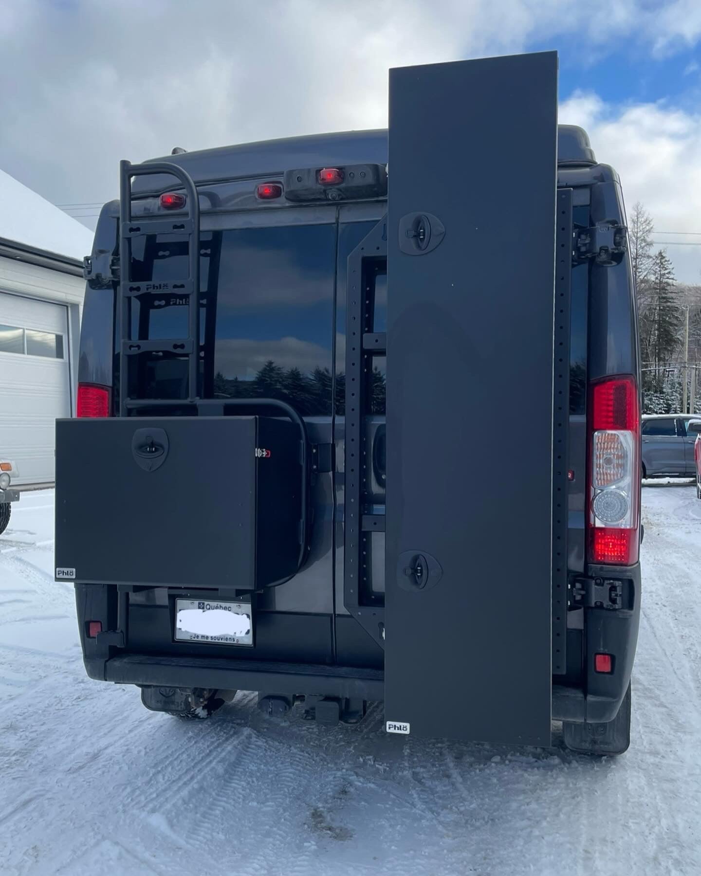 Les boîtes nécessitent un support tubulaire simple, une pleine porte, ou un support modèle Deluxe pour être montées sur le fourgon. L'installation est proposée à 150 $ dans notre établissement.