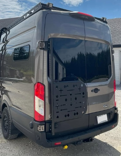 Support de pneus de secours pour porte arrière gauche côté conducteur pour Ford Transit 2015+. Les supports s’installent sur la boulonnerie déjà existante des portes et ne nécessitent aucun perçage de nouveau trou dans les portes. Le support est ajustable pour une grande variété de grandeurs de pneus et il y a 2 adaptateurs de fixation pour les roues en acier ou les jantes. Les supports suivent le mouvement d'ouverture des portes, ce qui facilite l'accès à l'intérieur du véhicule. Un ensemble de Deux bras de soutien de 10 pouces avec fixation pour tube de 1,5 pouce de diamètre sont inclus avec chaque support.