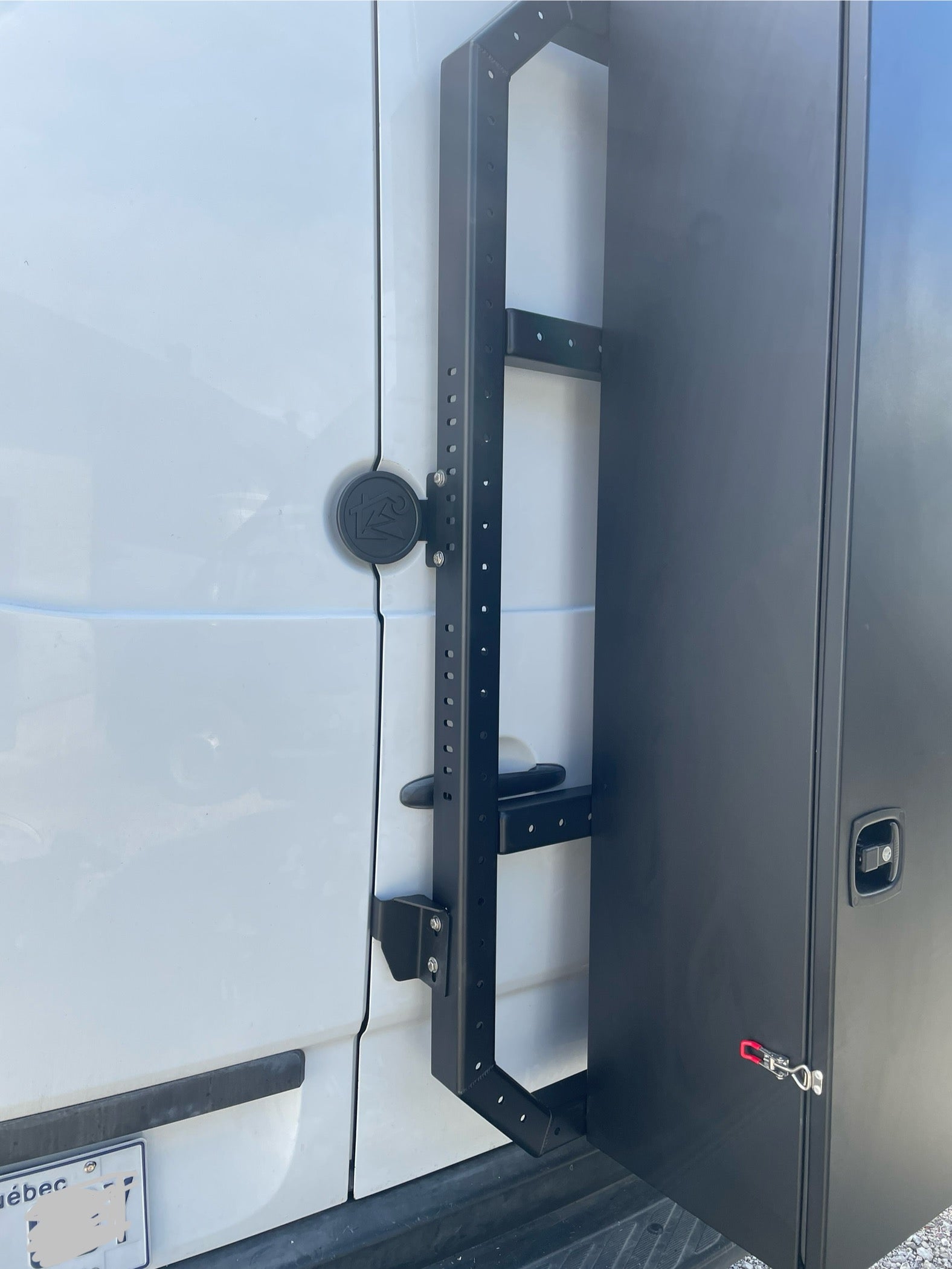 Les supports s'installent en utilisant la boulonnerie déjà existante sur les portes arrière, sans nécessiter de percer de nouveaux trous (seulement deux petits trous à faire derrière le logo Mercedes des véhicules Sprinter). Un ensemble de deux traverses de fixation est inclus avec chaque support. L'installation est proposée à 150$ dans notre établissement.