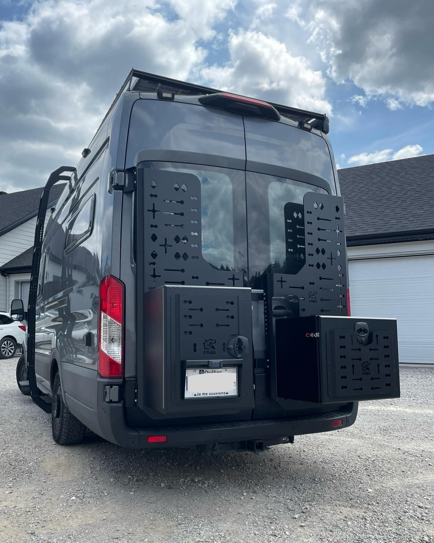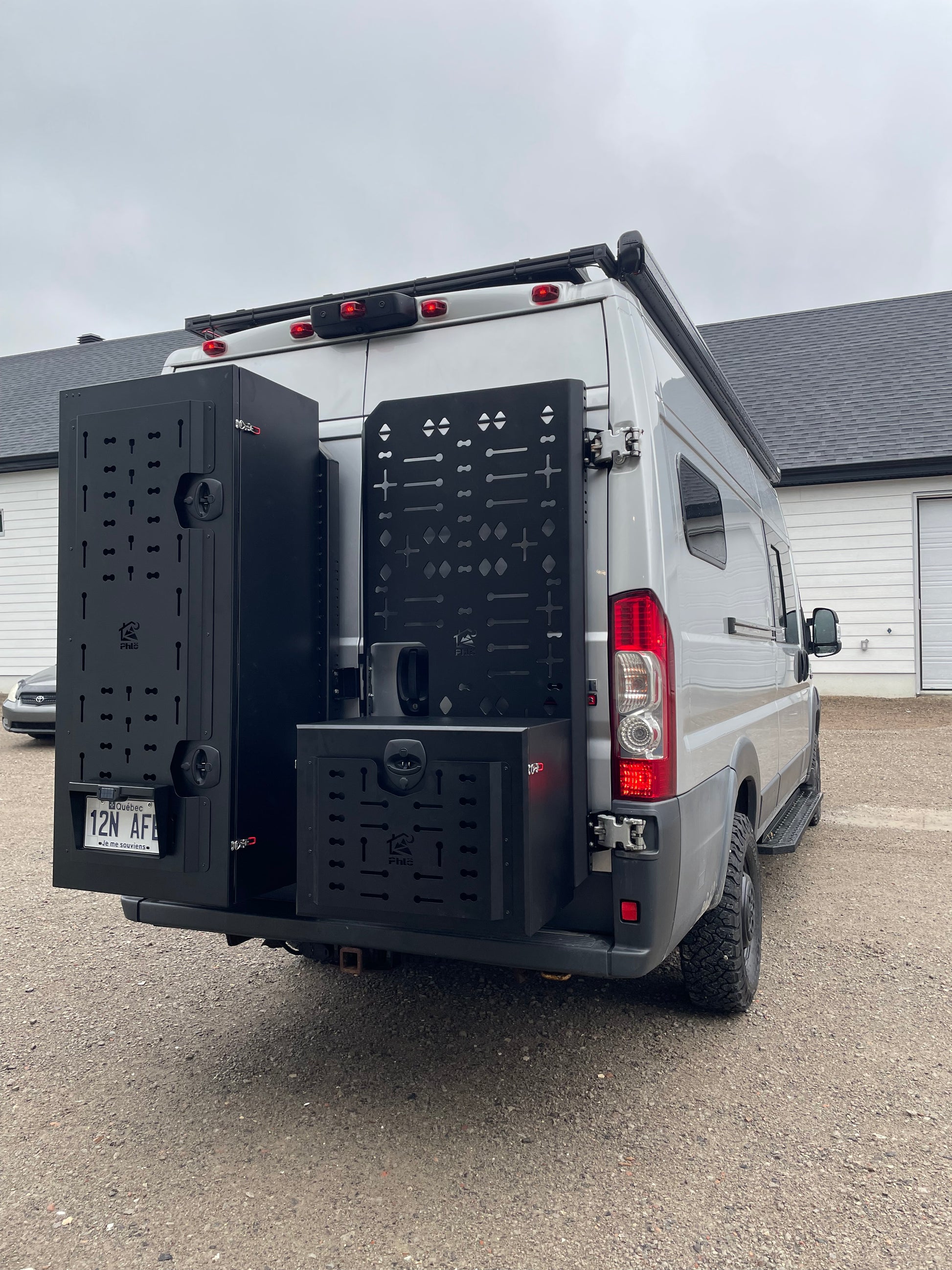 Il peut arriver malheureusement que la plaque d’immatriculation du véhicule doive être déplacée en raison de l’ajout d’accessoires et de supports dans les portes arrière de notre van. Ces supports en aluminium de 1/16’’ sont conçus pour la relocalisation des plaques d’immatriculation. Ils sont équipés d’une lumière DEL 12 volts (* il est nécessaire de refaire le branchement des fils de lumière avec le véhicule), ils sont pliés de manière à être rigides et légers, avec une protection contre la pluie directe pour la lumière. Les supports peuvent être fixés sur ou sous les coffres, ainsi que sur les supports de modèle Deluxe, les panneaux multifonctions et même sur les supports tubulaires à l’aide de 2 boulons en U de 1.5’’.